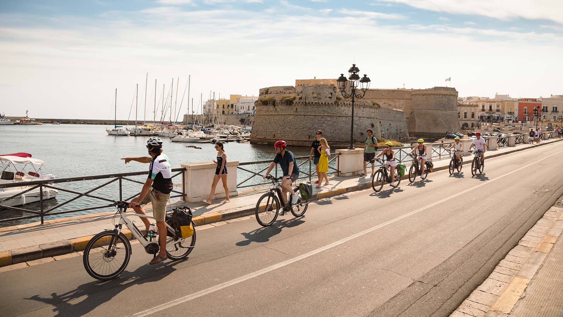Pedalare lungo i percorsi di questa zona significa riempirsi i polmoni di salsedine e respirare un'autentica atmosfera mediterranea, tra vicoli bianchi, mura difensive e viste mozzafiato sull'acqua.