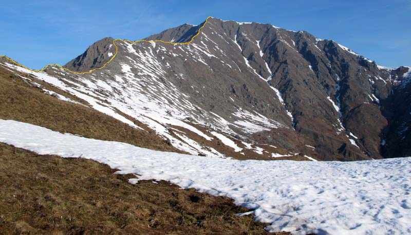 La cresta percorsa all'andata anche al ritorno è stata molto suggestiva, purtroppo la neve non teneva come prima, ma comunque i tratti da percorrerci sopra non erano ne' moltissimi ne' lunghi.